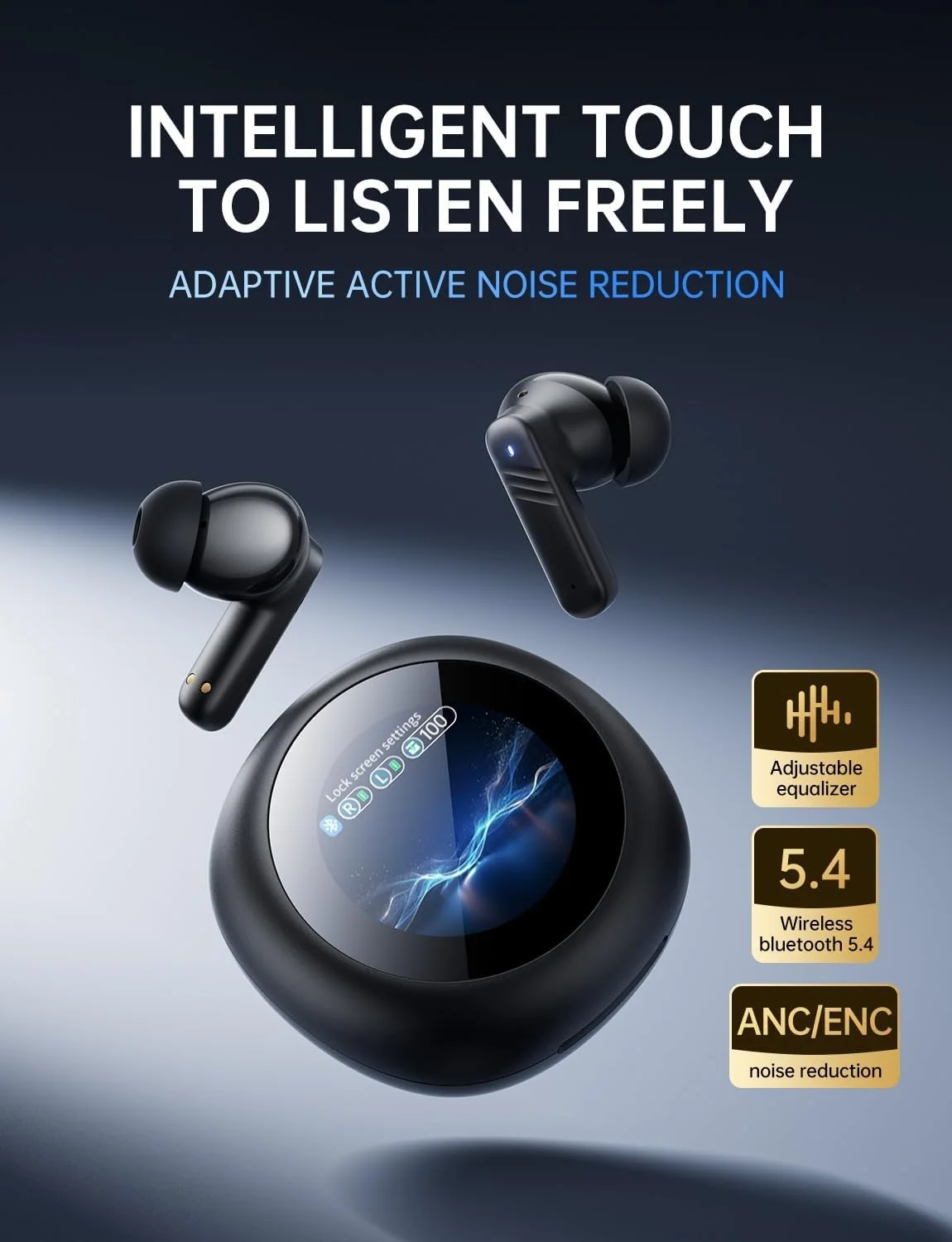 حافظة شحن ذكية تعمل باللمس: تأتي سماعات الأذن اللاسلكية بتقنية البلوتوث مع حافظة شحن ذكية مبتكرة تعمل باللمس وتتميز بشاشة واضحة. بلمسة بسيطة، يمكنك بسهولة إدارة تشغيل الموسيقى والرد على المكالمات وضبط مستوى الصوت. يعزز هذا التصميم سهل الاستخدام تجربتك ويجعلها أكثر راحة ومتعة. سواء كنت في المنزل أو أثناء التنقل، فإن حافظة الشحن هذه هي الرفيق المثالي لأسلوب حياتك الموسيقي!