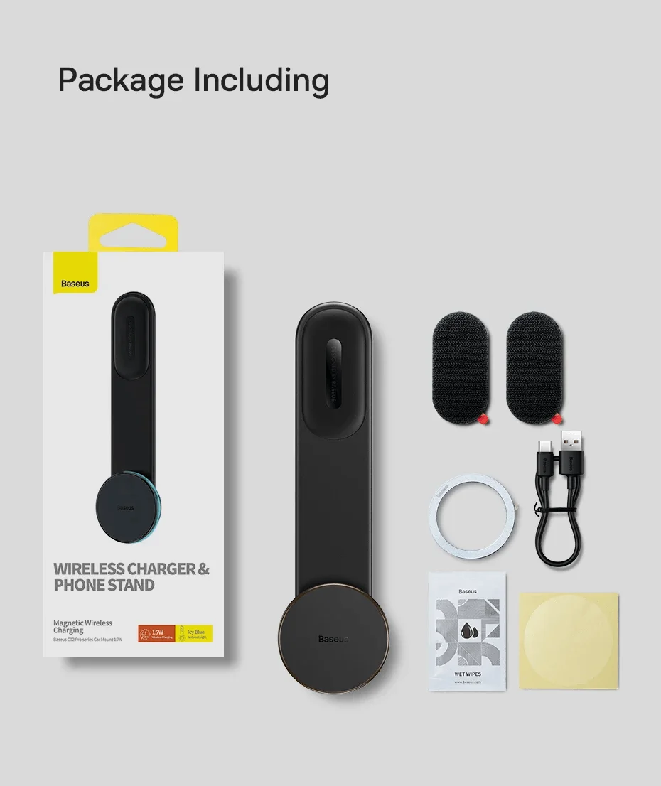 قاعدة شحن لاسلكية مغناطيسية بقوة 15 وات من Baseus لتركيب لوحة التحكم المركزية وشاشة لوحة القيادة لجهاز iPhone 14 13 12 Pro Max